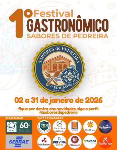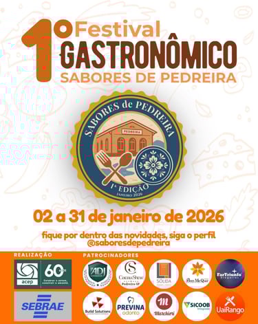 O Festival Gastronômico Sabores de Pedreira 2026 transforma o mês de janeiro em uma verdadeira celebração da culinária local. Com pratos inéditos, criatividade, autenticidade e a hospitalidade típica da cidade, o evento se consolida como um dos mais importantes da região.